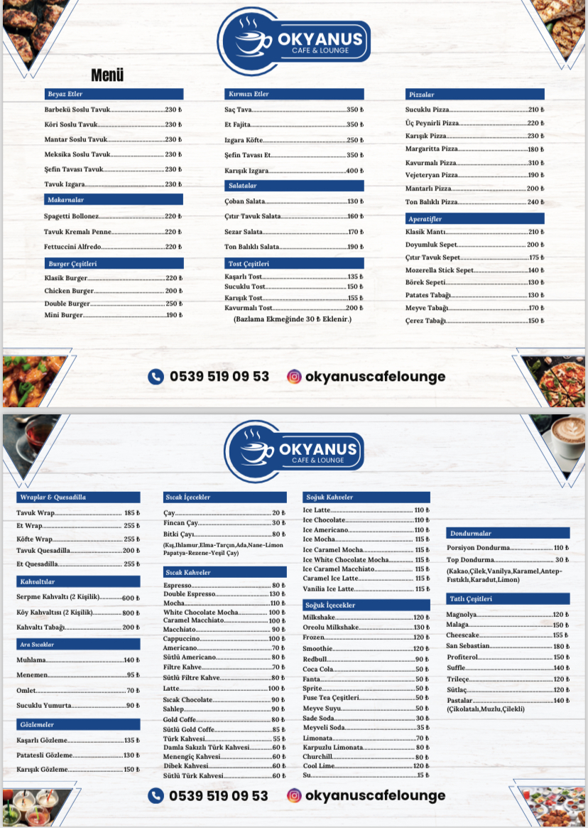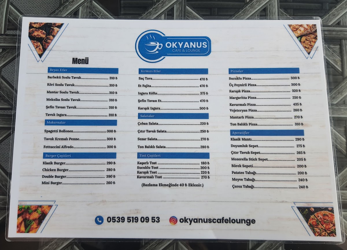 As you sip your drink, the soothing sounds of waves complement the breathtaking view of sunset, making each visit memorable. OKYANUS CAFE & LOUNGE invites you to immerse yourself in its scenic atmosphere for a unique dining experience by the sea.
